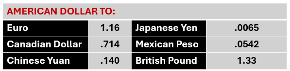 Key Currency Exchange Rates for Friday, 1/24/25
